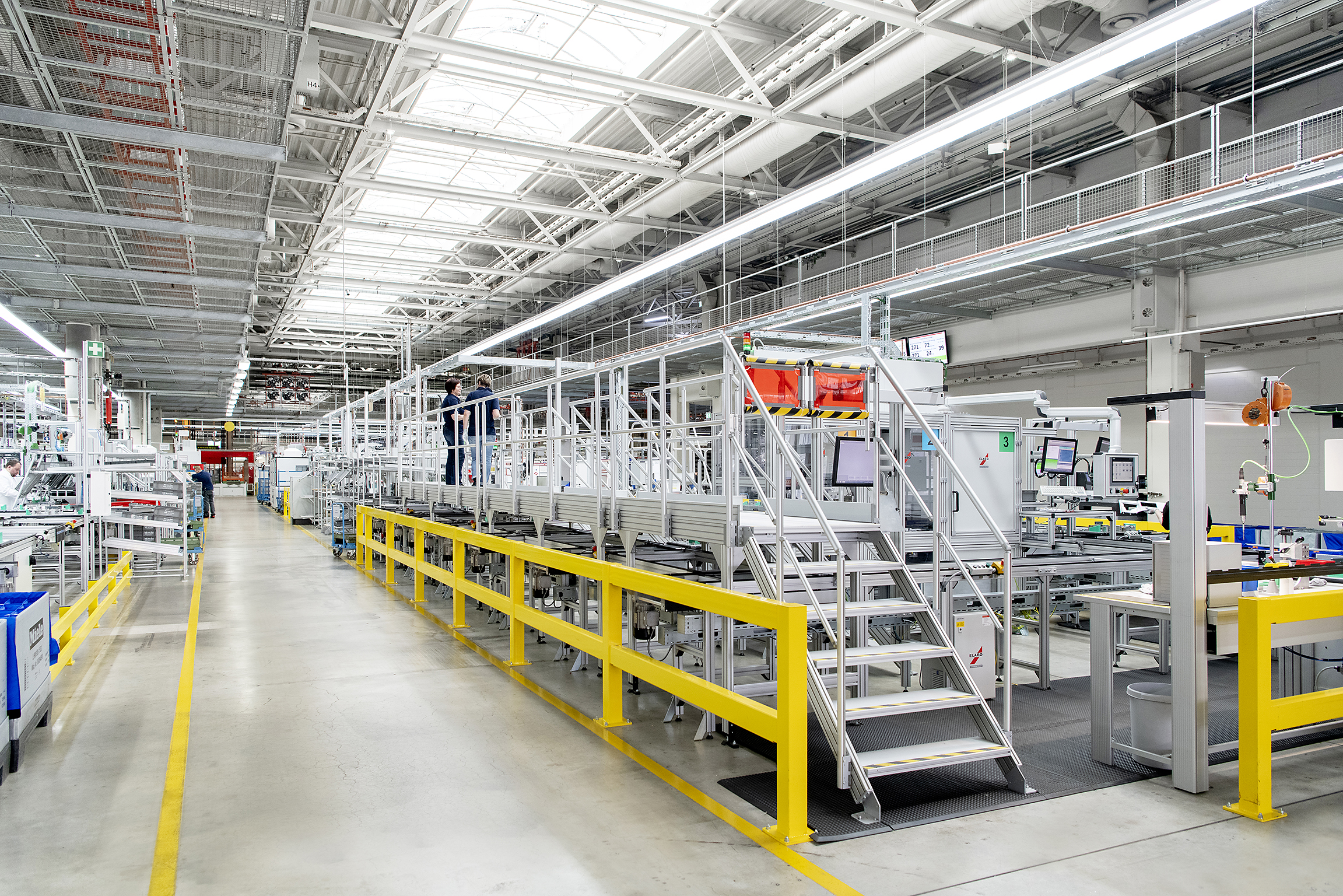 Caption 1: At its appliances plant in Gütersloh, Miele manufactures, among other things, switch panels for the washing machines produced there. The domestic appliances manufacturer uses item Stairway / Platform systems to ensure staff have safe access to production facilities.