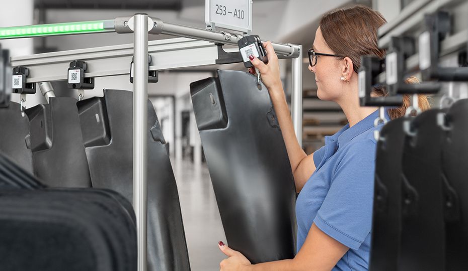 When parts take up a lot of space in a small load carrier or can easily become caught up together, the item Suspended Conveyor System offers an ingenious alternative solution. Cable harnesses or mats can be hung up or placed in bags so they can be efficiently moved around for further processing.